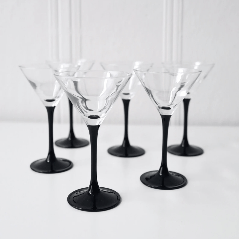 Set of 6 Vintage Luminarc Domino Martini Glasses | 1970s French Art Deco Revival